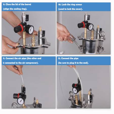 4. After changing the glue, cover the bucket and tighten the ring screws
