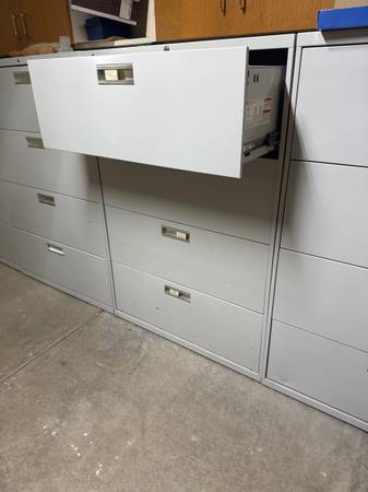 Hon four drawer locking lateral file cabinets in excellent condition with keys. I have four matching cabinets for sale at $150 each.