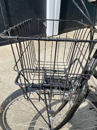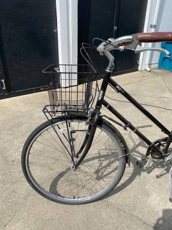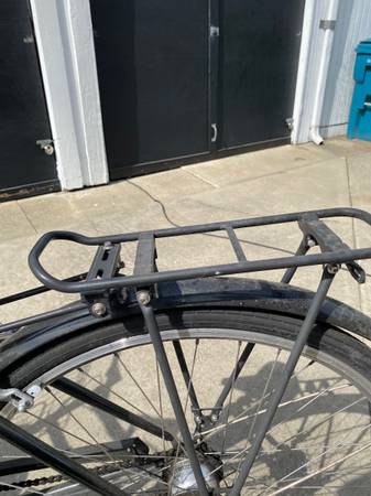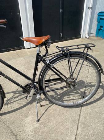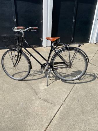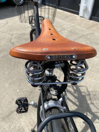 Black step through frame 8 speeds internal hub Has great rack in back and one in front under the basket Brooks saddle Made by Brooklyn Bicycle Company (well know bike builders in Philly PA)