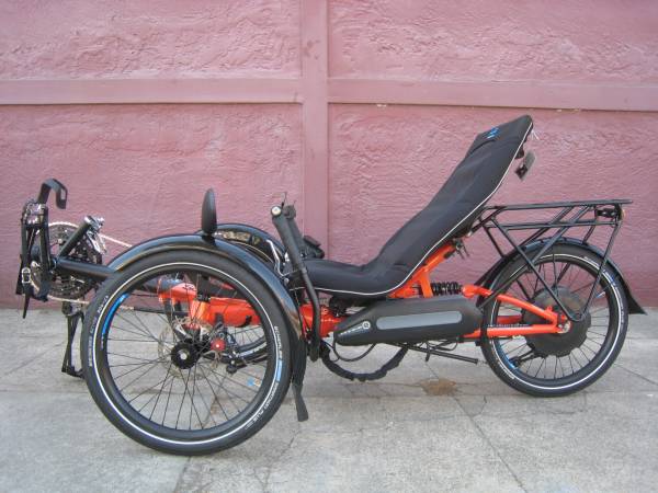 Barely ridden HP Velotechnik Scorpion fx 20 recumbent tricycle with Neodrives Z20 hub motor in as new condition located in Alameda, California. Only has 11.6 km (7.2 miles) on the odometer and has only been ridden on test rides on dry roads. Includes 5-year warranty on the frame.