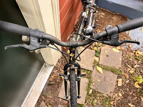 Hard Rock 17" bike with Shimano 200GS gears. Works fine but has been weathered at UCSC. Rack, water bottle holder and bell included. A perfect college campus bike! Come and get it, we're in West...