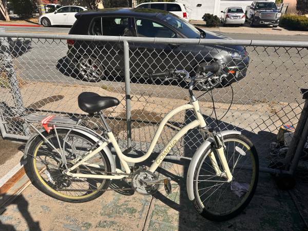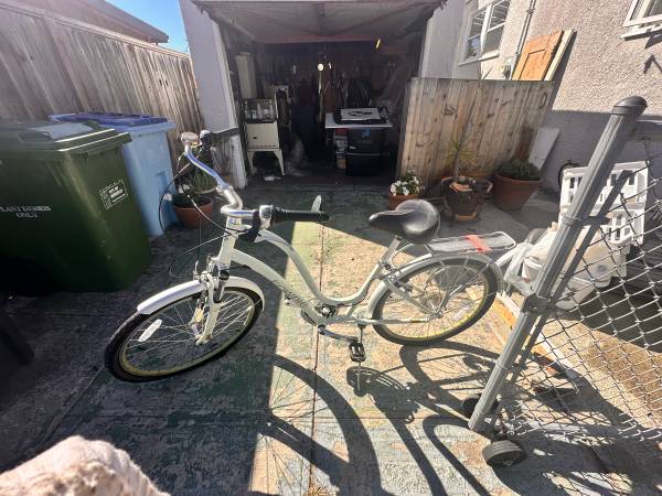 This bike has under 25 miles on it. Has been in storage for 10 years (tires are a bit flat). Had to stop using it due to bad knees. Includes helmet, safety vest, side mirror and night light. $150 OBO