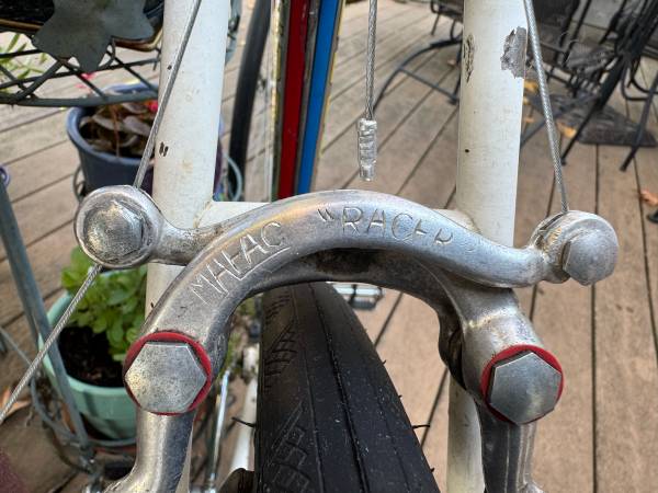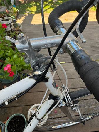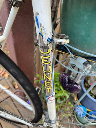 Beautiful early 70s Jeunet Franche-Comte road bike in good condition with patina showing bike rack wear and minor light rust. This is a large size bike measured 34 1/4” from ground top tube. Good for person over 6 ft in height. Wheels roll straight and true with cool stop brake pads in good condition. Beautifully lugged frame with original Mafac Racer brakes. Has original Sun Race shifters and rear derailleur and Simplex front derailleur. Has good tire tread on both tires. Everything is original except the wing flex saddle and new handle bar tape. Altogether a butter smooth ride. Please email if you have questions.