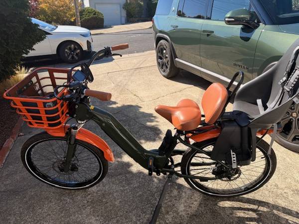 This is a custom Electric Bike Co bike that I barely used. It has a child seat and is so much fun to ride around town in. I’m asking $1,500 or best offer!!