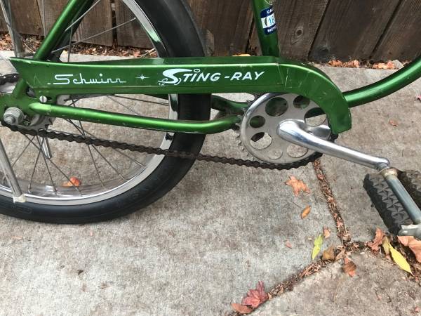 This is an original stingray with a rebuilt really nice 2 speed kick back rear wheel. With a nice SLIK The bike is an original an , as seen in the pictures. Send contact information.