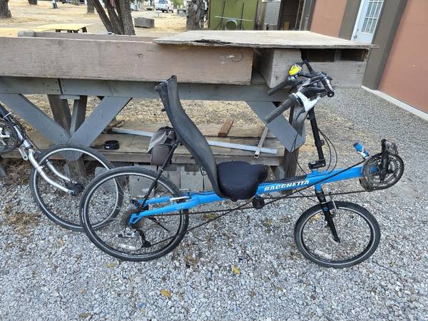 Two recumbent bicycles with custom made bike rack fits hitch and custom weatherproof cover. Bike 1 chopper style fits 5'11-6'5" Bike 2 Bacchetta fits 5'4"-5'11" Save hundreds Selling as a set for...