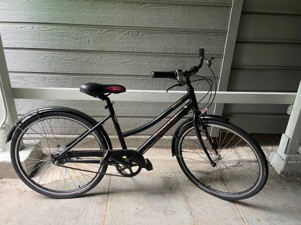This is a “women’s” or step through style frame ideal for a shorter person. I am the original owner and I bought the bike new around 2006. It’s been maintained and stored indoors. There are a few small scuffs and light use but everything still works perfectly.