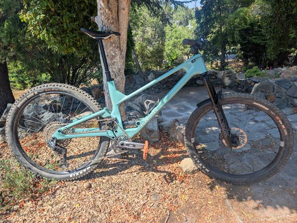 Bike is in great mechanical and cosmetic shape, needs nothing. This is the RockShox Transmission build, ordered January 2024. Nominal miles on this bike, and I’m a gentle rider. Would be great for Downieville, Annadel, et al. Because of the ‘high pivot’ chainline this bike feels like it has more rear travel than 130mm.