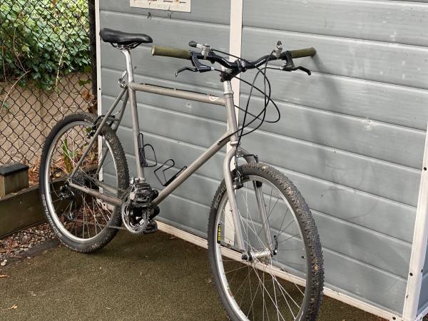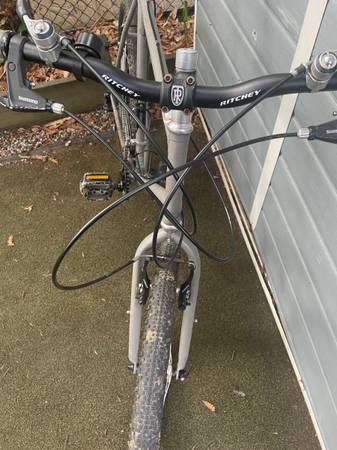 Lugged steel frame stump jumper. Added some shimano components and a few ritchey parts. Bought this as a frame a few years ago and built it up a little bit. Used it mostly to mash around town, a soma rack fits on front that a basket can be strapped to. Super reliable bike, that can easily be taken on trails or for grocery runs. Tuned up before being stored inside, this bike is ready to go. Thanks for looking!