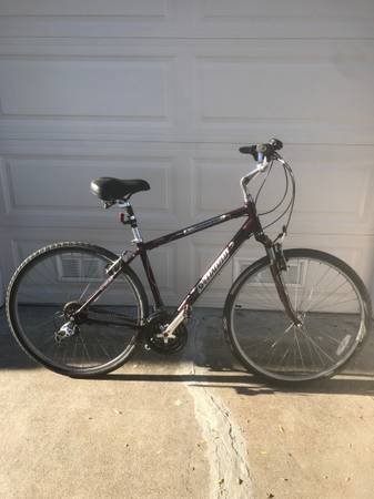 Nice hybrid, comfort, utility bicycle with 24 speeds. The color is a dark burgundy. Gears shift well and brakes work. The tires are 38c, also made by Specialized. The wheels have been trued and spin straight with no wobbles and hops. The quick release skewers have been replaced and upgraded to hex key skewers.