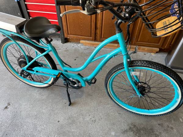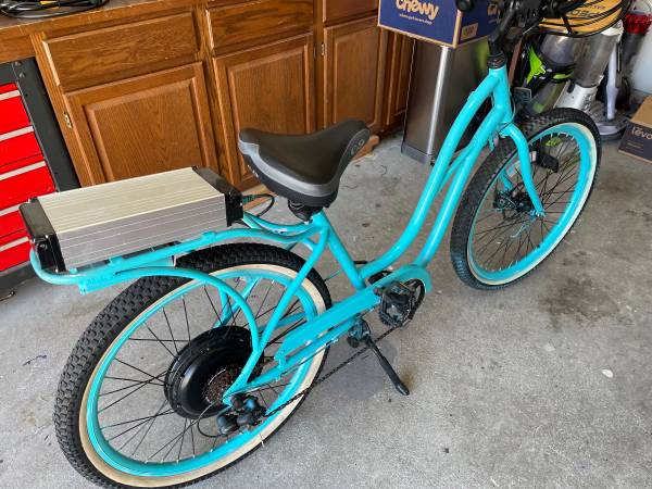 The Pedego Custom Cruiser is a classic-style electric bicycle built for comfort and leisure, featuring a swept-back handlebar, a comfortable saddle, and wide tires. It includes a powerful 500W rear hub motor, a twist throttle, and pedal-assist functionality for smooth and easy riding, with a removable battery that can be charged on or off the bike