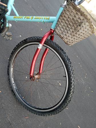 This is an early, rebuilt version of what they were designing. It comes with a fancy set of 26" Alloy rims, on a Hi-Stop coaster brake rear hub, and sealed Marin, front hub. Has been outfitted with almost all new parts, as you can see from the before (last) and after (first) photos.