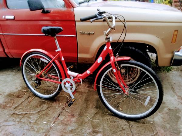 Fun bike In good working order. It is complete, has a kickstand, comfortable design, and nice alloy rims made by Rainbow! Easy to fold in half, and transport in the trunk, or backseat of car, of on...