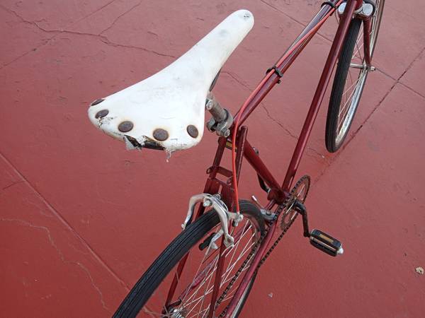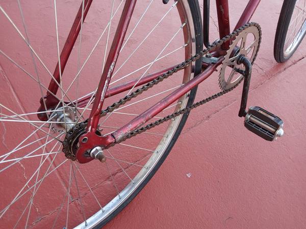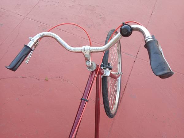 Classic candy red steel frame road bike, with chrome rims, cranks, and handlebars. It has been rebuilt recently, with new tires, seat, cables, brakes, rear sprocket, chain, grips, a kickstand, and...
