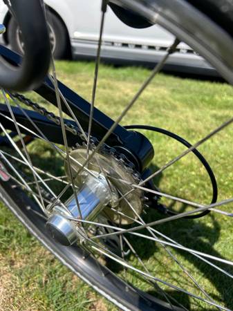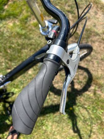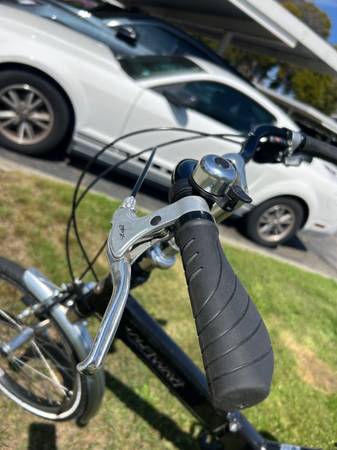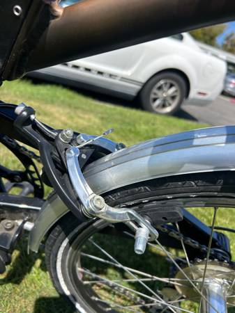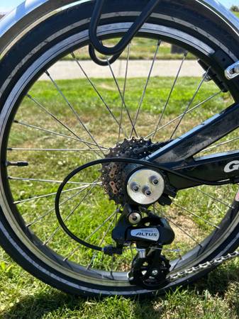 Selling a very unique folding bike by Giant that’s in excellent condition and has been tuned up by a professional bike mechanic. The wheels are 20”, typical of what folding bikes come with. The drivetrain is a Shimano 7spd, that was upgraded from the lower quality gripshift components. I added some ergonomic grips for better hand comfort and an ergonomic saddle, also more comfortable than the stock one. The handlebars were also replaced with some slightly swept back ones instead of the straight ones it originally came with as well. Also included, is a seat bag and bell to make your riding experience even more enjoyable.