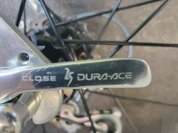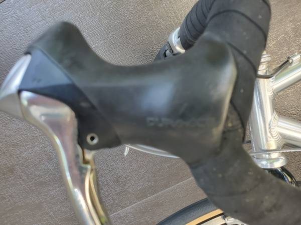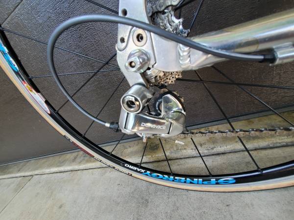 Dura Ace 25th Anniversary component group set mounted on a 1998 Marin Highway One road bike. The Marin Highway One
