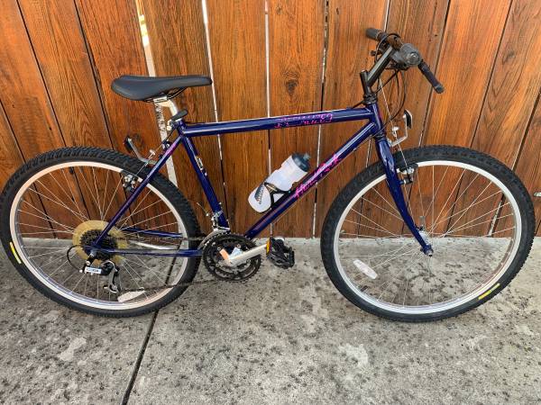 SPECIALIZED Hardrock MTB Vintage, medium 18โ Chromoly rigid frame, 26โ wheels, Midnight Blue, Shimano 21 Spd, new saddle, new tires and tubes, new water bottle and cage, exc cond. $295