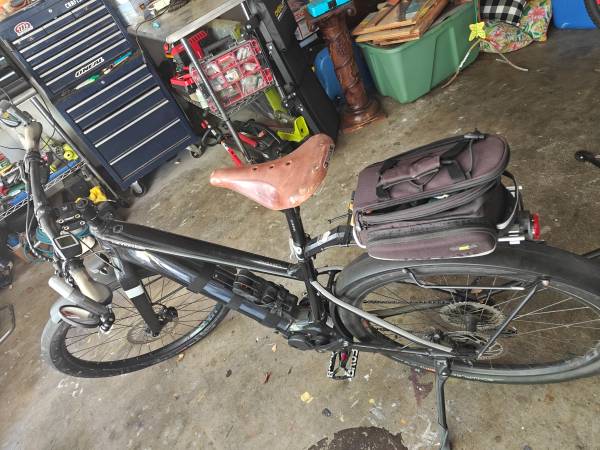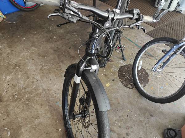 It's a e-bike I have two batteries two 700 and 50 kilowatt hour batteries ,and good condition ,I have shocks on the stem and the fork is carbon I have shock on the seat post an eco mode you can go 150 Miles.