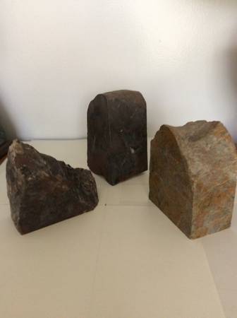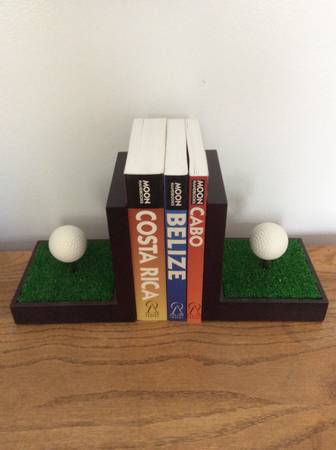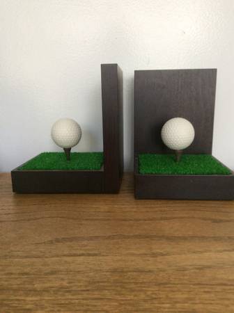 Golf Ball Bookends 6"H, 5x4,5" platform Green marble bookend (1) 7x6" Cut rocks bookends $10 each. 6", 5"H. Hawaiian Dictionary. $10. French Dictionary $10 Available 8am-7pm . Call, text.