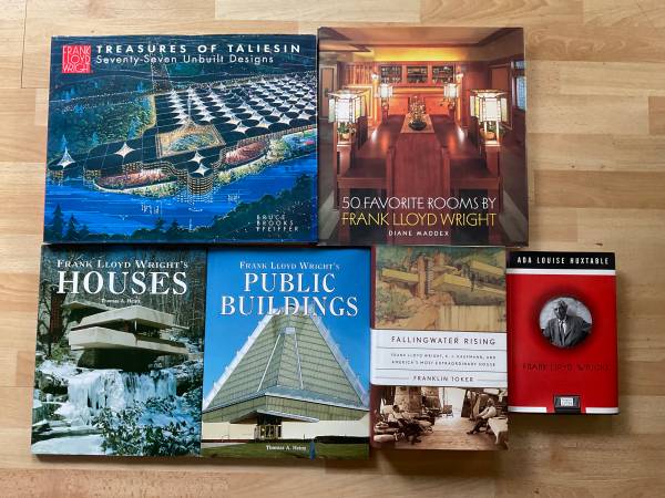 Thank you for viewing this great lot of 11 different books on Frank Lloyd Wright. Six are hardback, 5 are paperback, and all are in very good condition. These would make a wonderful gift for a FLW fan or someone who likes architecture.