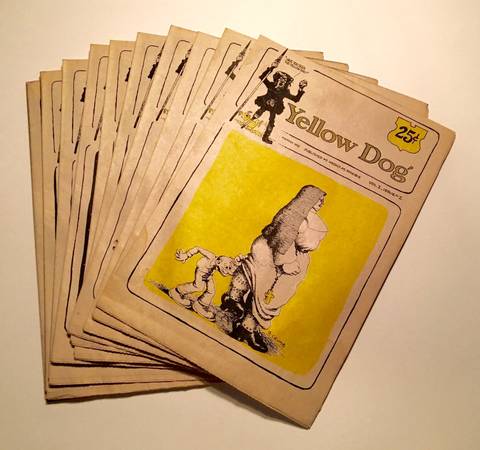 Yellow Dog started out as a tabloid-size fold-out newsprint broadsheet with black-and-white interiors featuring some yellow spot color, published by the Print Mint in Berkeley, California. It published 22 issues from 1968 to 1973, featuring many of the period's most prolific and legendary underground cartoonists, including Robert Crumb, Joel Beck, Robert Williams, Rick Griffin, Greg Irons, and Trina Robbins. Crumb contributed to many of the seminal works of the underground comix movement in the 1960s.