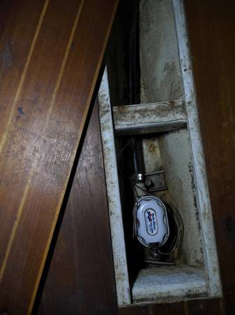 She has a dry bilge and a 12V Rule-Mate electric bilge pump. There are dimmable color changing lights installed as well as Sony dual-core speakers, model number XS-MP1611. There are no leaks through the deck or portlights, even after spraying the boat with lots of water.