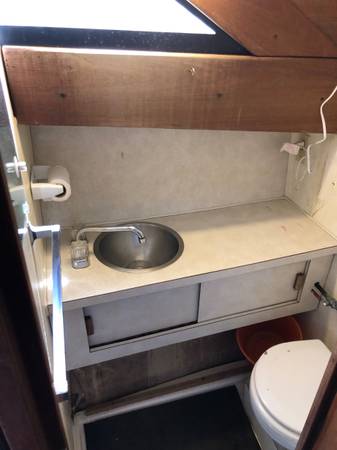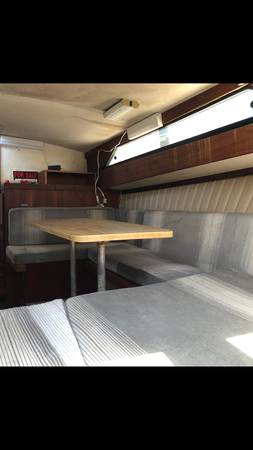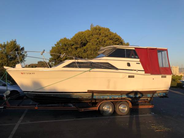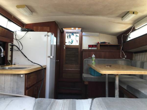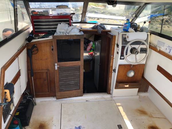 I have a 1976 Trojan Fishing Cruiser for sale. I initially bought the boat in 2019 with plans to overhaul the boat. The boat has been out of the water since 2020 and is in storage. Unfortunately the military has not allowed me to get back to California to finish the boat so I am looking to sell it. The boat is currently on a dual axel trailer that will come with the boat (tires might be flat at this point). I had removed the frozen engine in the boat before storing it. The engine bay was repainted after engine removal and I installed a refurbished electric water heater and installed a new waste tank for the bathroom. I still have the Borg-Warner Velvet drive 1:1 transmission sitting in the boat. The upholstery was redone in 2018 before I purchased the boat and is in great shape. Cockpit can comfortably sleep 2 and has table and refrigerator as well as a bathroom. All the boat should need is a good cleaning and new motor and it will be a great boat to have on the water to fish or use as a live aboard. If you have any questions feel free to reach out. Asking $1500 OBO