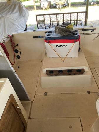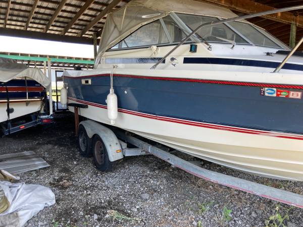 Cuddy has three bunks, porta potty, sink, new water tank and faucet, pole holders, two manual downriggers, live bait well, live fish box, 350 motor, hydraulic trim tabs, windless, depth finder, trailer, new surge brakes, new LD lights, new wiring, new buddy hubs. Tires have 50 miles use. Located in Bethel Island. Asking 7000$ or bo