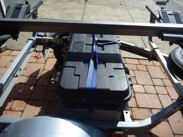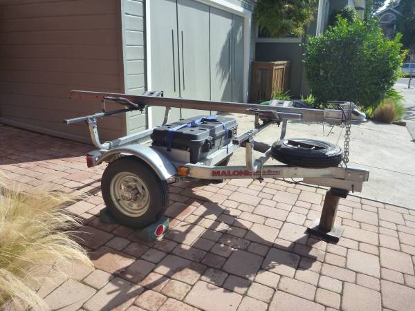 The included trailer is the Malone Micro Sport (MPG 460G) with the following accessories: Micro Sport 12” Galvanized Spare Tire with wheel lock (MPG 465), removable storage trunk (MPG 481), retractable tongue kit (MPG 494) and the Malone Mega Wing (MPG 207). Over all lots of storage space in this kayak and it is fast and steathy with a weight of 78 pounds. Inclued also is the kayak dolly supporting the kayak shown in the photos.