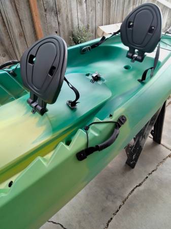Bought two months ago and paid over 500 new. its been used once asking $ 225 or best offer it's in great condition the kayak is a one two or three seater it comes with two seat backs its rated for 425 pounds. It very stable super difficult to flip it over in the water it's 10 ft 6 inches long