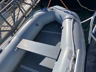 This is an 8'8" inflatable with aluminum floorboards. I took it out of the bag this past spring and used it as a tender for a few months this summer. Very lightly used and in great shape. The outboard was bought new from West Marine this year and has less than 4 hours on it. Runs great!