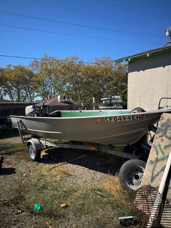 Gregor 13’ Aluminum boat with motor. (Troller not included) Newly painted. Ez load trailer with all new tires. Current reg! Call leave a message to view.