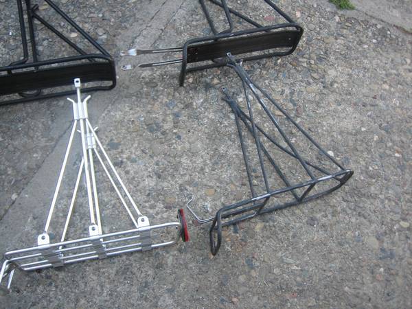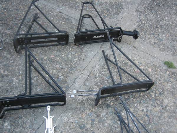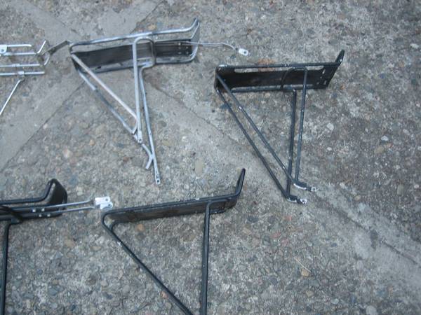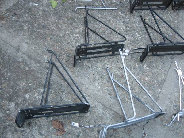 10 Assorted Bicycle Rear Pannier Touring Racks All weather is goos shape except one is broken $100 for all. Will not separate.