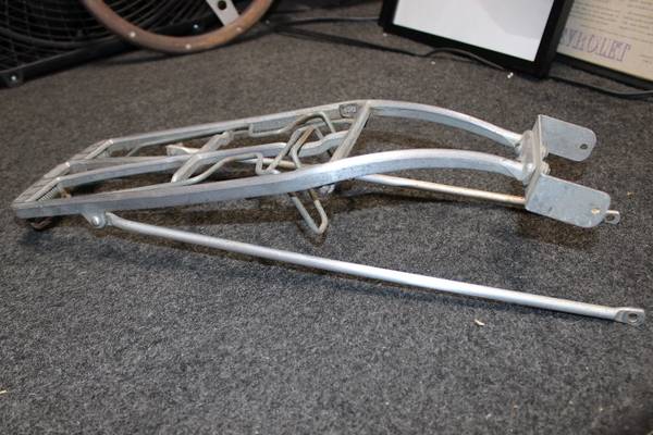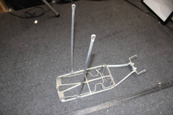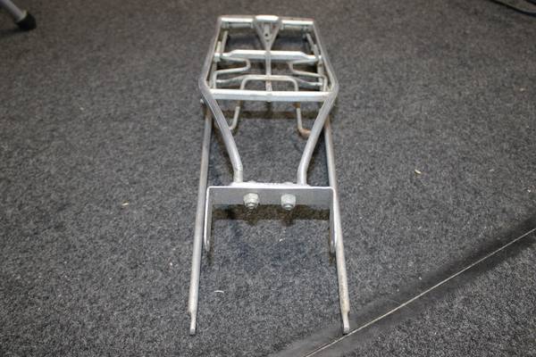 here's an older model rear rack for 26-27" wheeled bicycles. spring loaded, not bent or twisted but could use a little cleanup.
