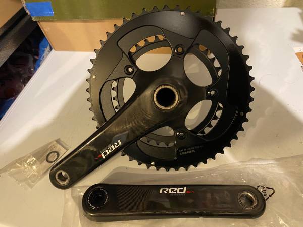 For sale is an excellent very lightly used SRAM Red 11 speed crank set. The crank set was new and installed on my bike and ridden for less than 25 miles. I decided I needed a different size, and so it’s removed for sale. The crank set is in very nice excellent condition with just a couple of chain ring teeth showing a tidbit of use.