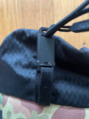 Like new chrome industries bicycle double track feed bag in duck camo. Good for high vis. Perhaps only used once; very clean. Comes with the two velcro straps to attach to handlebars or stem. Good for snacks, tools, a tiny jacket, an extra water bottle. Have too many bags and am downsizing. No longer sold by chrome.