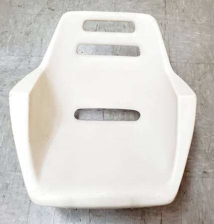 Used, good condition White, plastic fishing chair Includes adjustable mounting bracket (one knob is cracked)