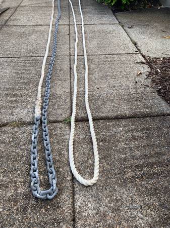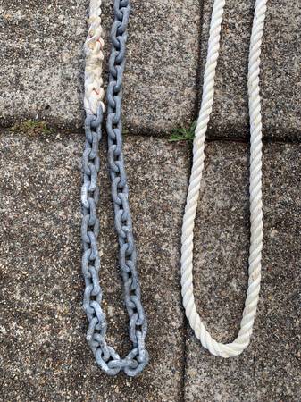 8 lb anchor, 200’ 1/2” nylon rope spliced to 20’ of galvanized 1/4” chain Good condition