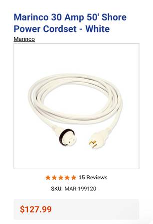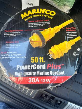 Brand new in the package. WHITE 50’ Marinco 30 amp power cord. No longer need 30 amp cords. See the retail price on the photos. I travel from Half Moon Bay to Antioch on a weekly basis and can drop...