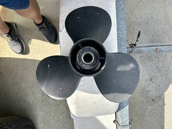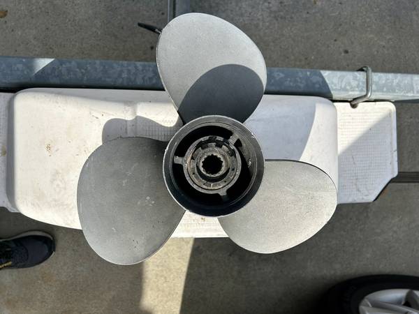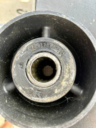 Mercury Quicksilver 14", 13 pitch, 3 blade aluminum outboard motor propeller with hub. 15 spline RH, model 48-77344 A40 13p. Excellent traction, especially in loaded down boat. Excellent condition....