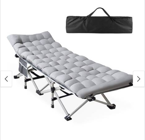 Selling an extra-large heavy-duty camping cot in excellent condition. Perfect for camping, backyard lounging, or even as a spare guest bed.