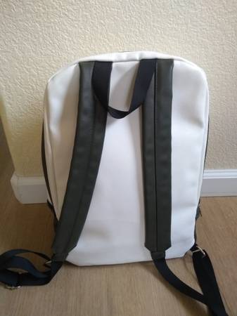 Stylish design and durably made. The backpack features vegan leather with top two compartments and one bottom compartment, signature silver tone zippers and brand logo. Adjustable shoulder strap....
