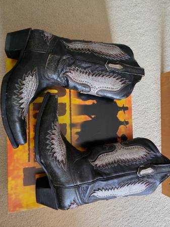 CORRAL WOMENS BLACK SILVER WINGS COWBOY BOOTS 8 1/2 -LEATHER CRACKING $125.00 Please email or text