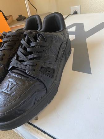 LV MEN Black shoes, used once for photos. See photos. Like new; r e p l 1 c a s. LV 450 M 1A5S8M. Box and shoe bags included. R E p l 1 c a s. Worn once. Ask me questions.