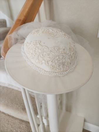 Custom/Homemade Vintage French White Ivory Lace Bridal Hat with Pearls and Rhienstones 80's! Never Worn!