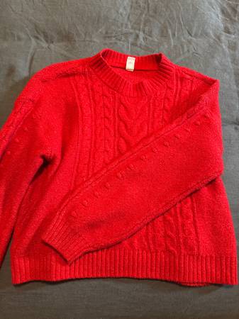 Cozy red cable knit sweater, perfect for chilly days. Old Navy, Size XS. $20 Green Turtleneck, Zara, used less than 5 times. Size Small$45 Purple & Other Stories Sweater Size Sml, $45 All...