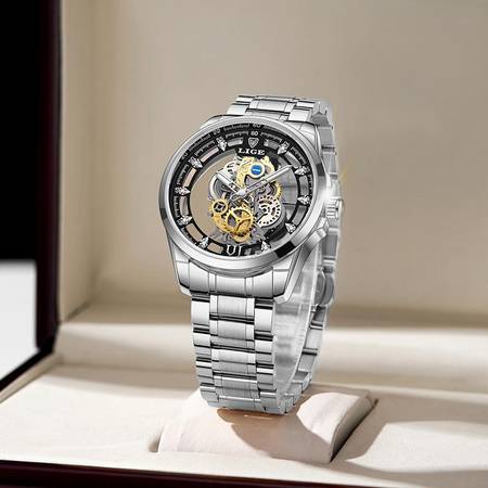 2024 LIGE Men's Automatic Skeleton Quartz Watch Vintage Design Luxury Mens Wristwatch