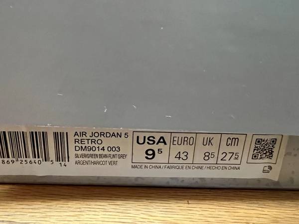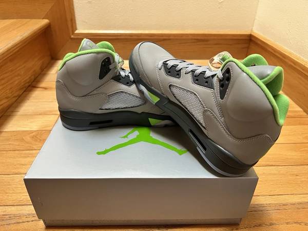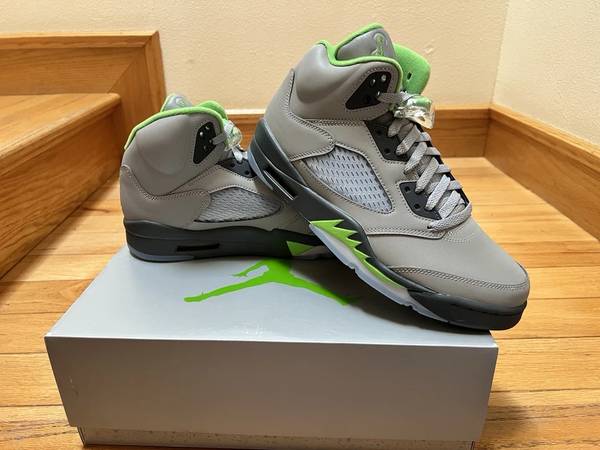 Nike Air Jordan 5 Retro Green Bean 2022 in Men's size 9.5 is a Mid Top sneaker with a green colorway. It features a standard shoe width and is part of the Nike Air product line. The shoe is a 2022 release and belongs to the Retro theme. The model number is DM9014 003. no low ballers!