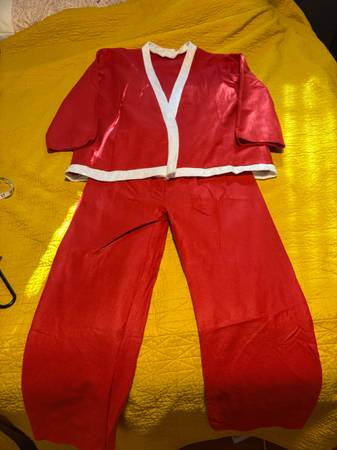 Five piece Santa costume. Jacket, pants, belt, hat, and beard. Never worn.