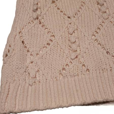 Loft Cream Sweater is knitted in the diamond and bobble pattern. It has a ribbed neck and cuffs. It’s a size medium, measuring about 26” across the chest, 25” long. 60% cotton 40% acrylic, machine wash cold. It's a beauty! Never worn.